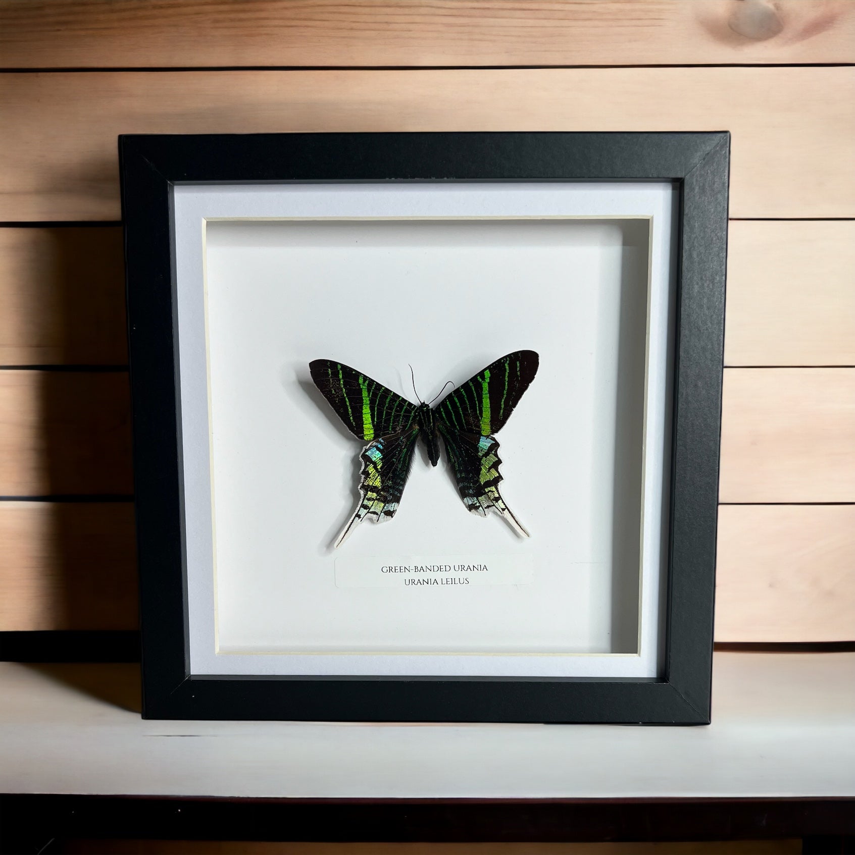 Hand pinned, mounted and framed. Black or white Shadow box frame available. Frame size 20cm x 20cm x 3cm