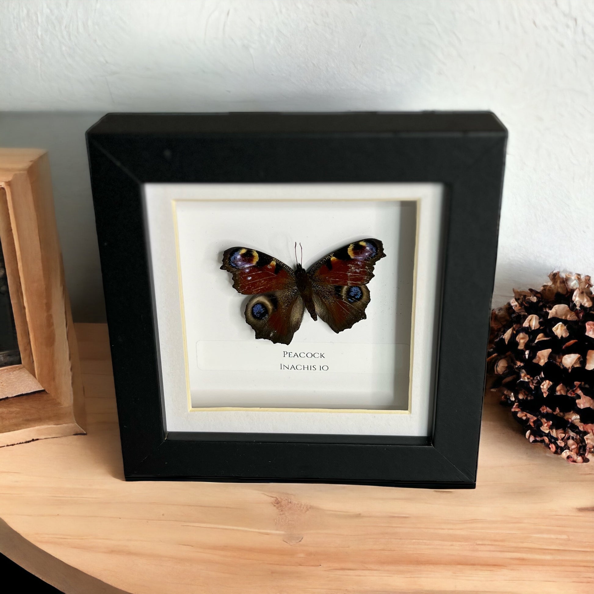 Hand pinned, mounted and framed. Black or white Shadow box frame available. Frame size 12cm x 12cm x 3cm